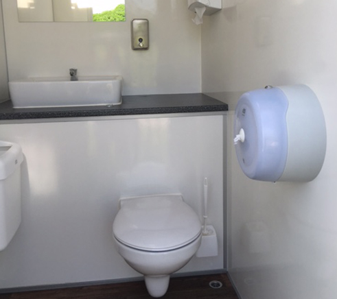- La remorque comprend 2 compartiments équipés chacun d’un WC / un lavabo (eau chaude) / un urinoir / un chauffage électrique.